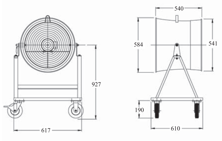 COPPUS DOUBLE DUTY HEAT KILLER強效工業風機,適用工序冷卻和人員降溫。DOUBLE DUTY散熱器為現今市場上用途較廣的散熱通風機之一,送風量高達23,978m3/hr。具有專利導式葉片,可調整控制氣流,選擇冷卻的微風或者集中噴射的強風,以符合實際操作的需要。